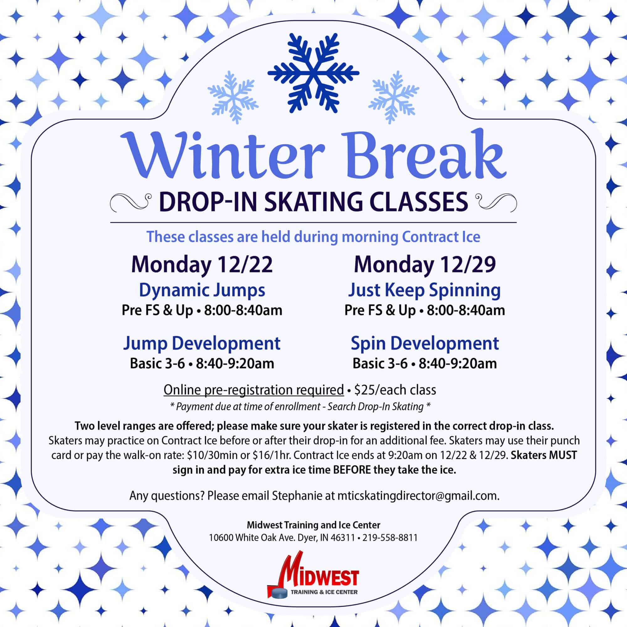 Questions? Email our Skating Director at mticskatingdirector@gmail.com or call our main office at 219-558-8811.